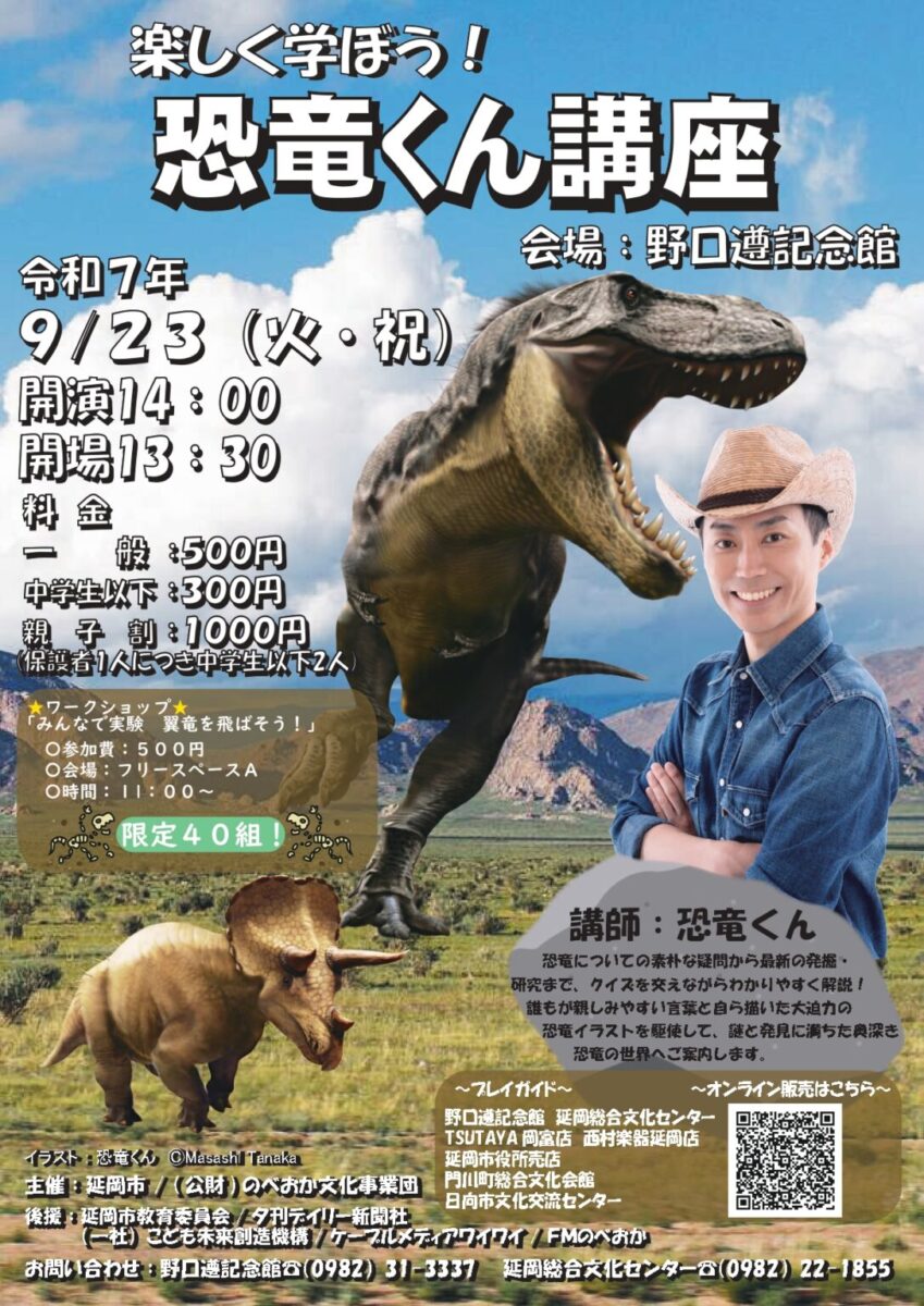 9/23(火・祝)宮崎県・野口遵記念館『恐竜くんワークショップ&トークショー』